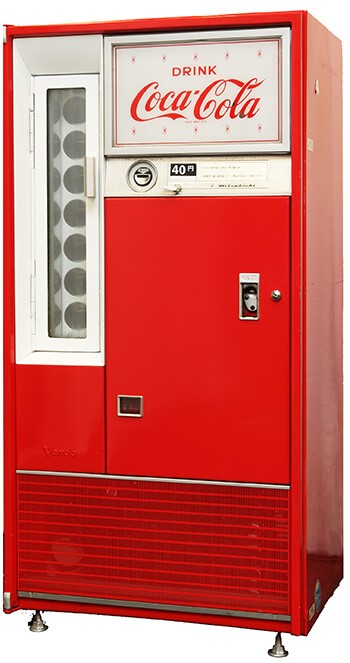 これは「半自動式自販機」と呼ばれ、お金を投入後、自分で瓶を引き抜くもの。1962年米国メーカーによって日本に導入され、瓶飲料の自販機がスタートしました。