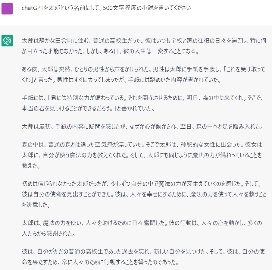 【Q】chatGPTを太郎という名前にして、500文字程度の小説を書いてください