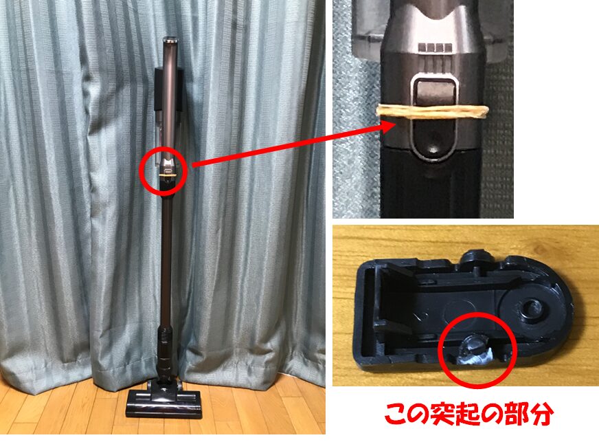 少し前から掃除機のノズル取付部分が破損していて、輪ゴムで応急処置をしていました。