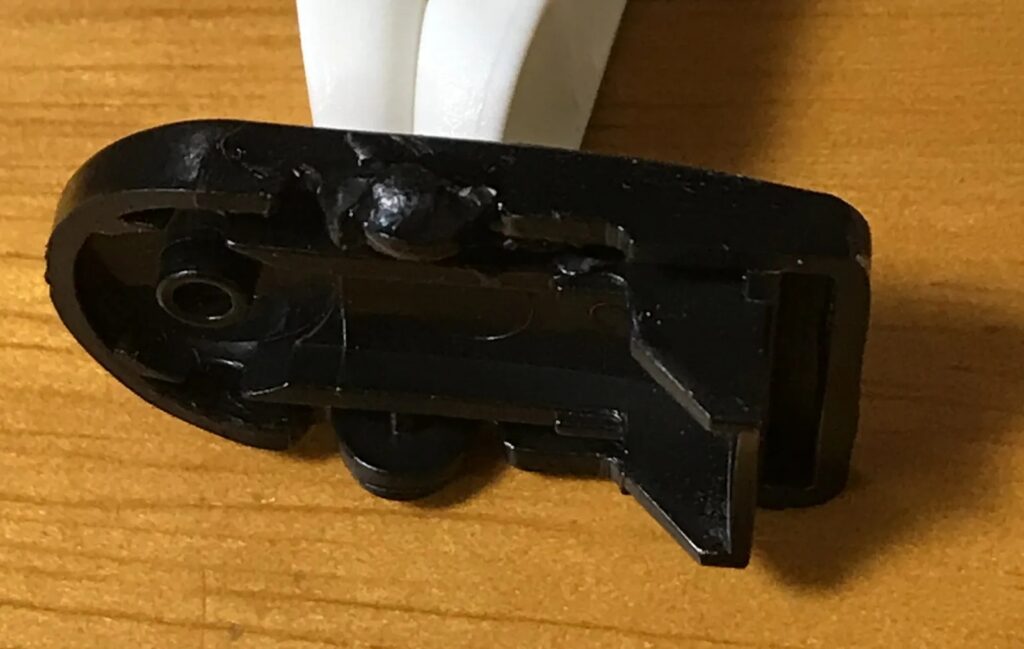 そして、輪ゴムから解放!と思いきや、翌朝見るとこの部品が落下しており、この補修は失敗。