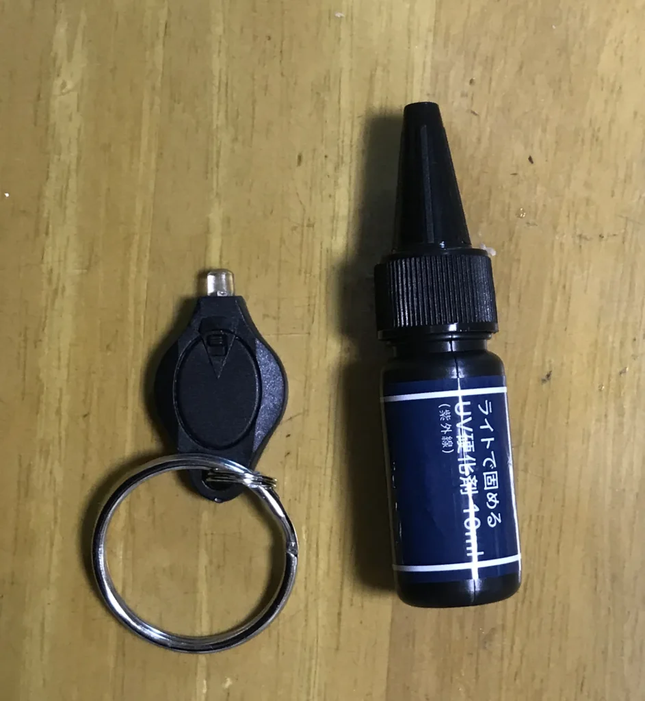 UVレジンとは、液体プラスチックで、紫外線(UV)をあてると固まる、接着剤&パテのような物です。以前から気になっていました。