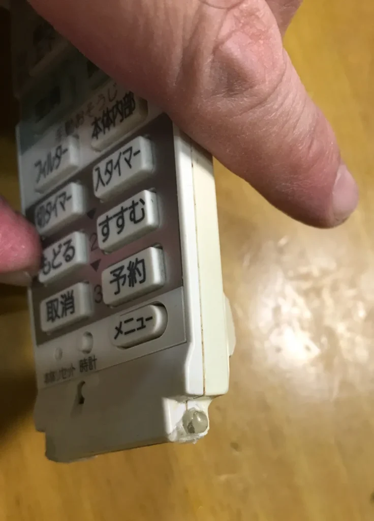 先のリモコンは単にはまっているだけなので問題なかったのですが、掃除機の場合はこの下にスプリングが入っていて、その微少な圧力で再び破損したのだと推測されます。