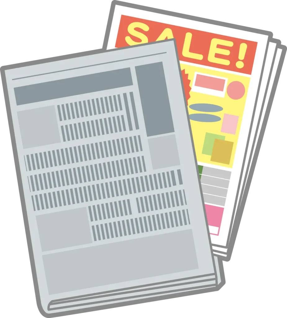 物販のご案内は、他のチラシ同様、新聞に折り込まれ、新聞購読者に届けられます。