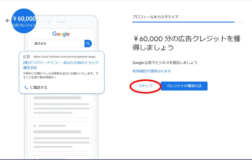 次に必要なのがビジネスプロフィールの作成です。ご自身のアカウントでGoogleにログインした上で、こちらのページ(Google の無料のビジネス プロフィールを使ってアピール)から作成が可能です。