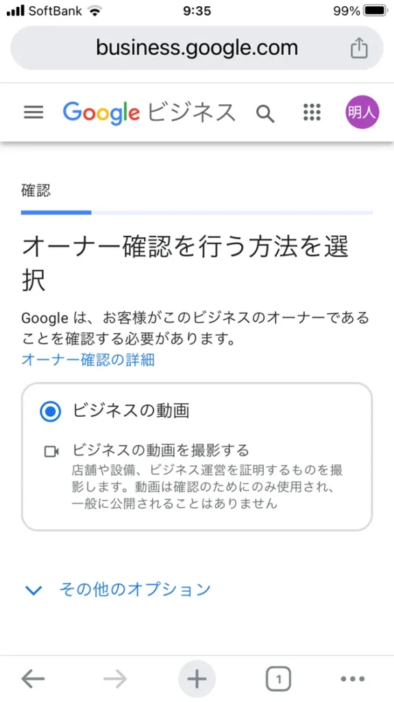 ※住所が同じなのでこのメッセージが表示されましたが、別の会社なので“これは私のビジネスではありません”を選択しました。