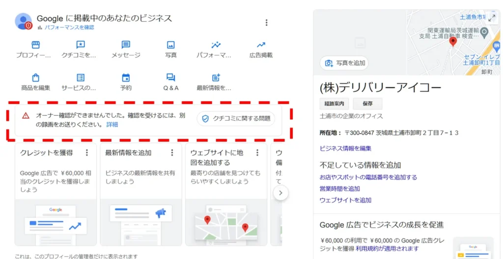 再度ビジネスプロフィールのサイトを見ると、残念なお知らせが。