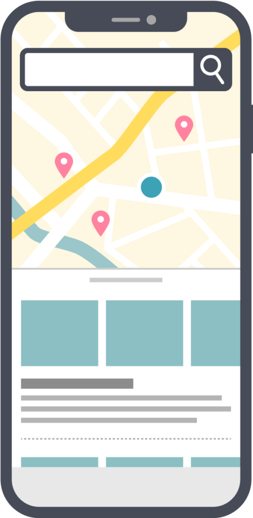 またマップでは、位置情報をオンにしていれば近隣の地域に絞った情報が表示される仕組み、つまり通常の検索結果には地域を問わない情報が並ぶのに対して、マップでは競合が少なく、上位表示がされやすい仕組みになっています。