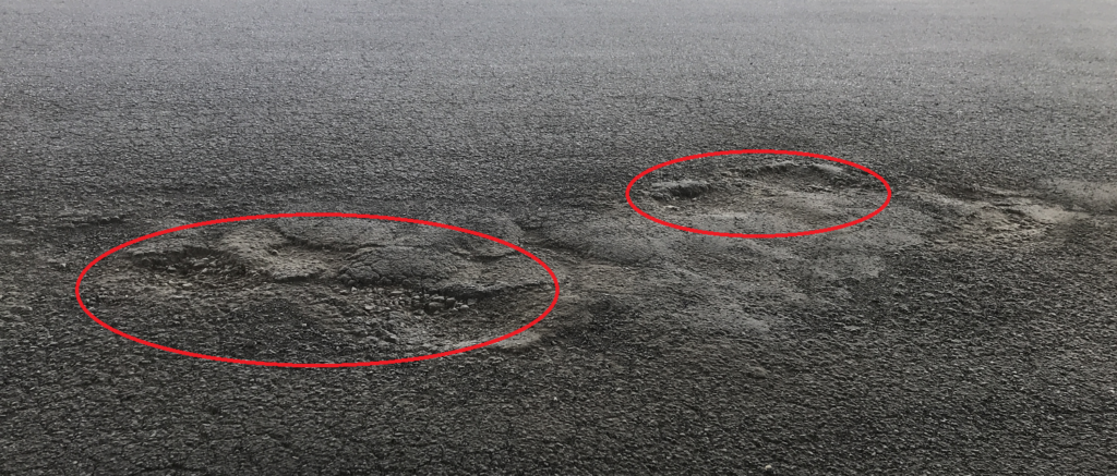 敷地内のアスファルト部分は弊社が来る以前から大きな補修はされておらず、おそらく20年以上経過、雨が降ると水たまりができる場所がちらほら。