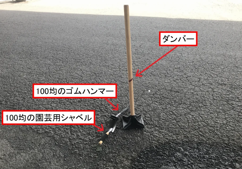 ダンパー、ゴムハンマー、園芸用シャベルです。