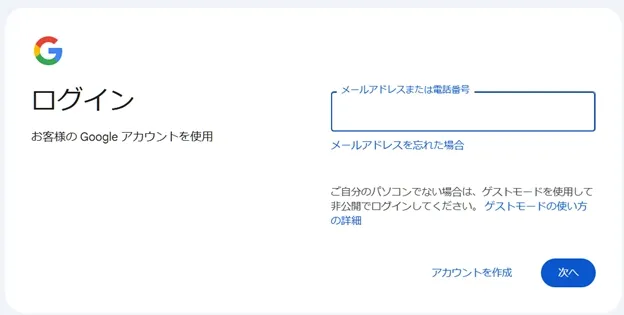 なお、閲覧権限のないユーザーが閲覧しようとすると、このようにGoogleアカウントの入力を求める画面になり、許可されたGoogleアカウントでログインしない限り閲覧することはできません。