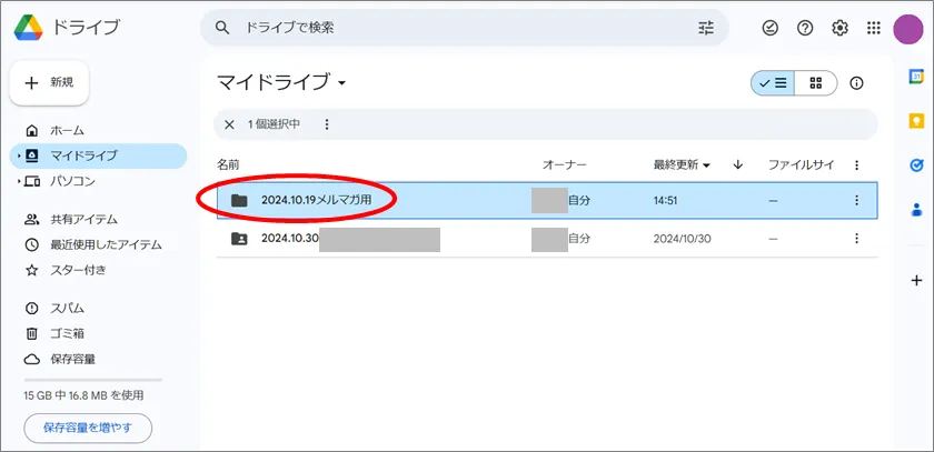 今回は、「2024.10.19メルマガ用」というフォルダを作りました。