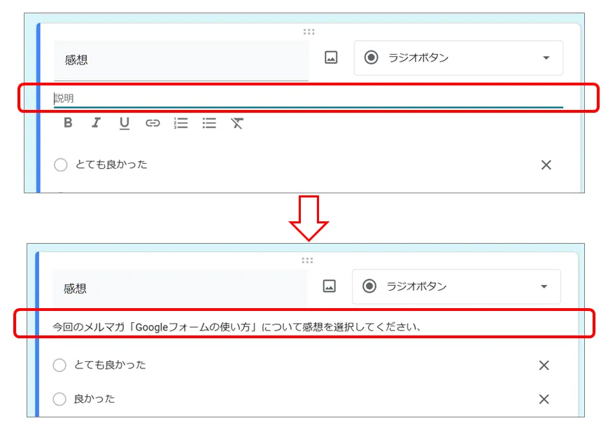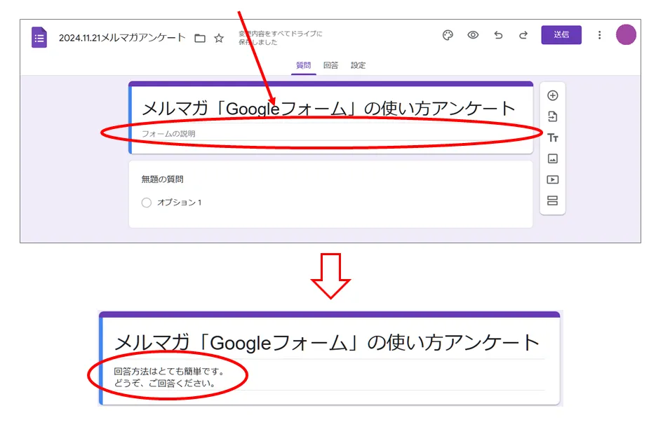 「フォームの説明」の部分に、テキストを記述することができます。