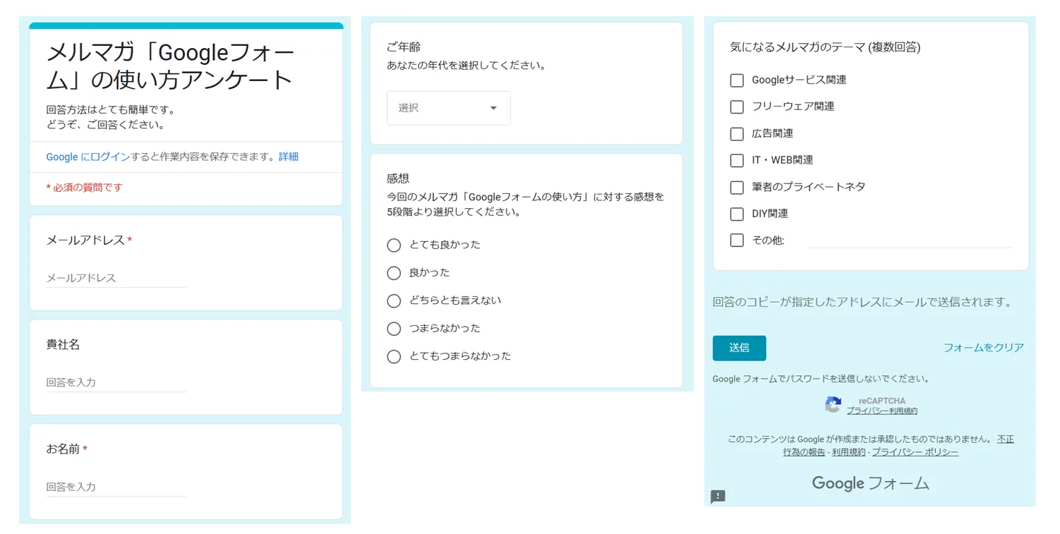 今回は、このメルマガに対するアンケートフォームを作ってみました。