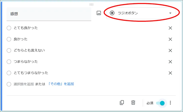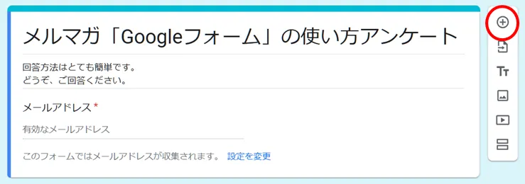 この「+」マークから質問フィールドを追加します。