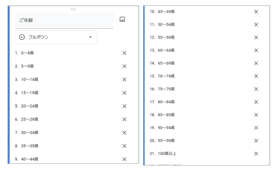 「プルダウン」で5歳刻みの選択肢としました。