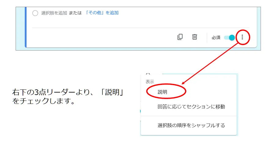 すると、「説明」のフィールドが追加されますので、ここに説明を記述します。