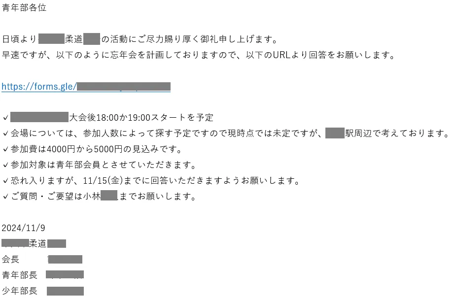 単に、連絡を受け取るだけであれば、今回の忘年会の件も、わざわざGoogleフォームを使おうとは思いませんでした。