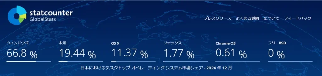 そして、国内のデスクトップOSのシェアは66.8%がWindowsと、相変わらず高いシェアを誇っております。