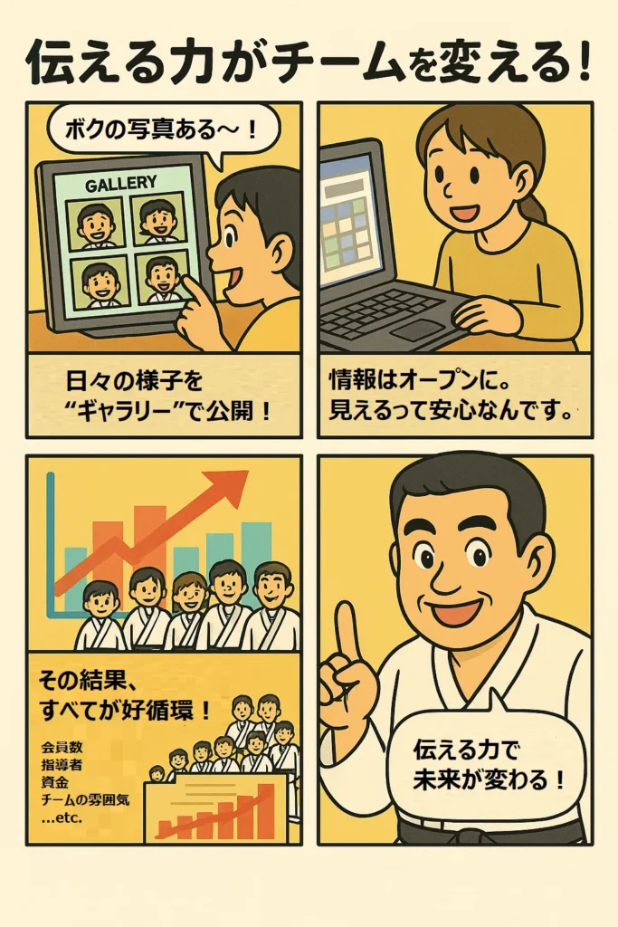 今はインターネット社会です。普段の活動を見える化することで、これらの問題を解決し、見学や体験、入会のチャンスを引き出すことができます。